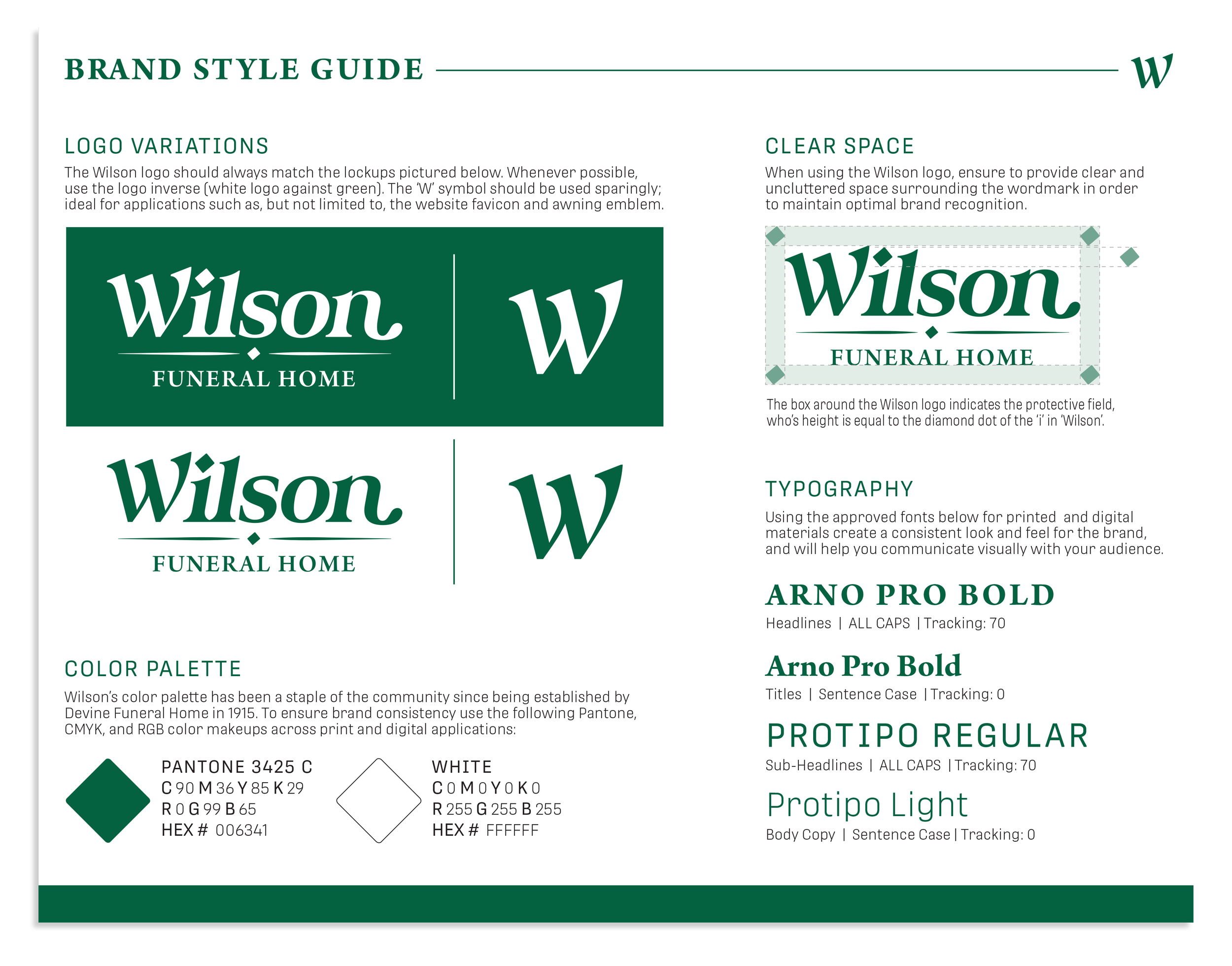 The redesigned wordmark captures the dignity, tradition, and trusted nature of Wilson Funeral Home. The clean, modernized approach respects the brand’s long history while creating a more contemporary, recognizable, and ownable presence. This design now reflects the quality and care the business has offered for over a century, providing a fitting visual representation for generations to come.